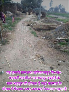 मेरी ग्रामसभा के गांव भाहापुर की यह तस्वीरें आप लोगों के सामक्ष पेश हैं जिसमें आप साफ देख सकते हो कि तस्वीर में जब यह हॉलात हैं तो मौके पर किस तरह से बारीक कमियां रहीं होगीं हांलाकि प्रधान इन सब चीजो से बेसुध हैं बता दूं मित्रों मैं आपको कि कल शाम यानी 24 फरवरी को मैं इस गांव में कुछ काम से गया था जब अपनी बाईक से उस रस्ते से निकला तो देखा कि खड़ंजे की हॉलात कैसी है जहां पर पैदल चलना भी मुश्किल हैं इस समय तो बरसात के सीजन में पैजामा ऊपर उठाकर निकलना पड़ता होगा यह मैं सोंच ही रहा था