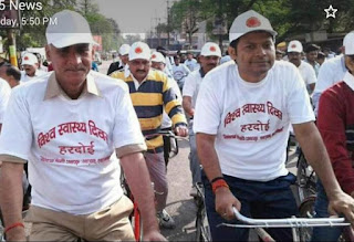 हरदोई। विश्व स्वास्थ्य दिवस के अवसर पर जिला चिकित्सालय से आयोजित साइकिल रैली में जिलाधिकारी पुलकित खरे व पुलिस अधीक्षक विपिन कुमार मिश्र ने भाग लिया। रैली में जिलाधिकारी, मुख्य विकास अधिकारी सहित अन्य जनपद स्तरीय अधिकारियों तथा गंगा देवी इण्टर कालेज, आर0आर0इ0का0, लाल बहादुर शास्त्री इ0का0 व रफी अहमद किदवई इ0का0 के छात्रों ने साइकिल चलाई। साइकिल रैली जिला अस्पताल से सिनेमा चैराहा से बड़ा चैराहा, बड़ा चैराहा से नुमाइश चैराहा, नुमाईश चैराहा से अमर जवान चैराहा से होते हुये अस्पताल परिसर में समाप्त हुई। जिलाधिकारी, पुलिस अधीक्षक व मुख्य विकास अधिकारी ने नगर में साइकिल चालकर स्वास्थ्य के प्रति लोगों को जागरूक किया।