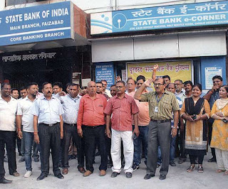 लखनऊ (K5 News)। यूनाइटेड फोरम ऑफ बैंक यूनियंस के बैनर तले गुरुवार को लखनऊ में छह विभिन्न बैंकों की शाखाओं के सामने बैंक कर्मचारियों व अधिकारियों ने प्रदर्शन किया। आगामी 30 व 31 मई को अखिल भारतीय स्तर पर बैंकों में होने वाली हड़ताल को सफल बनाने का संकल्प लिया। उन्होंने इंडियन बैंक एसोसिएशन (आइबीए) द्वारा बैंक कर्मचारियों व अधिकारियों के वेतन में दो प्रतिशत की वृद्धि किए जाने के प्रस्ताव का विरोध किया। अलीगंज स्थित यूनियन बैंक ऑफ इंडिया की शाखा के बाहर हुए प्रदर्शन व सभा को नेशनल कंफ्रेडेशन ऑफ बैंक इम्प्लाई (एनसीबीई) के प्रदेश महामंत्री व स्टेट बैंक ऑफ इंडिया स्टॉफ एसोसिएशन के केके सिंह ने संबोधित किया। कहा कि विगत नवंबर 2017 में देय वेतन पुनरीक्षण के लिए मई 2017 में चार्टर ऑफ डिमांड प्रस्तुत किया गया था लेकिन, अभी तक वेतन पुनरीक्षण के काम में कोई प्रगति नहीं हुई। बड़े ऋणों की स्वीकृत एवं देखरेख के अभाव में एनपीए होने के कारण लाभ के एक बड़े भाग को रिजर्व फंड में ट्रांसफर कर बैंकों को घाटे में दिखाया जा रहा है। सिर्फ दो प्रतिशत की वेतन वृद्धि हमें मंजूर नहीं है। उन्होंने कहा कि दो दिन की अखिल भारतीय स्तर की बैंक हड़ताल को हम सब एकजुट होकर सफल बनाएंगे। यूनियन बैंक ऑफ इंडिया स्टाफ एसोसिएशन के वरिष्ठ कर्मचारी नेता एसडी मिश्रा ने कहा कि कुप्रबंधन के कारण ही बैंकों में एक के बाद एक घोटाला सामने आ रहे हैं। इसकी दुहाई देकर जिस तरह आइबीए ने सिर्फ दो प्रतिशत वेतन वृद्धि का प्रस्ताव रखा है वह बेहद शर्मनाक है। इसके खिलाफ जोरदार आंदोलन चलाएंगे। इसके अलावा जिन पांच बैंक शाखाओं के बाहर गुरुवार को प्रदर्शन किया गया उनमें हजरतगंज स्थित सेंट्रल बैंक ऑफ इंडिया, आलमबाग स्थित केनरा बैंक, इंदिरानगर स्थित इंडियन ओवरसीज बैंक, चौक स्थित बैंक ऑफ इंडिया और गोमतीनगर में केनरा बैंक के सर्किल ऑफिस के सामने प्रदर्शन व सभा की गई। इसमें राकेश पांडेय, अनुपम कुमार व राजेश शुक्ला सहित बैंक कर्मचारी यूनियन के नेता व कर्मचारी मौजूद रहे।