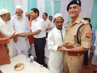 हरदोई, - आज ईद के पावन पर्व पर जिलाधिकारी पुलकित खरे व पुलिस अधीक्षक विपिन कुमार मिश्र ने प्रातः ईदगाह पहुंच कर, ईद की नमाज के बाद मुस्लिम भाईयों को गले लगाकर तथा बच्चों से हाथ मिलाकर ईद की मुबारकबाद दी। इस अवसर पर जिलाधिकारी ने जनपद वासियों को ईद की मुबारकबाद देते हुए कहा कि ईद का त्यौहार लोगों के दिलों में मिठास भरने वाला होता है, इस लिए ईद के मुबारक पर्व पर सभी एक-दूसरे के गले मिलकर व सारे गिले-शिकवें भुलाकर प्रेम एवं भाईचारे के साथ ईद का त्यौहार मनायें।