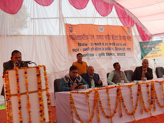 इस अवसर पर उप परियोजना निदेशक आत्मा जय राम सिंह ने किसानों को सम्बोधित करते हुए कहा कि किसान भाई जैविक खेती को ओर ध्यान दे और विधितता के साथ खेती करें और खेती के साथ साथ पशु, बकरी, मधुमक्की पालन एवं फल व सब्जी की भी खेती करें ताकि सरकार की मंशानुसार किसान भाई अपनी आय दोगुनी कर सकें। उन्होने कहा कि जिन किसानों ने अपनी फसल का बीमा कराया है और किसी कारण उनकी किसी भी फसल को बाढ़, ओले, आग आदि किसी प्रकार से क्षति होने पर इसकी सूचना 72 घण्टे में बीमा कम्पनी को दें ताकि उनकी फसल की नुकसान की भरपाई हो सके।