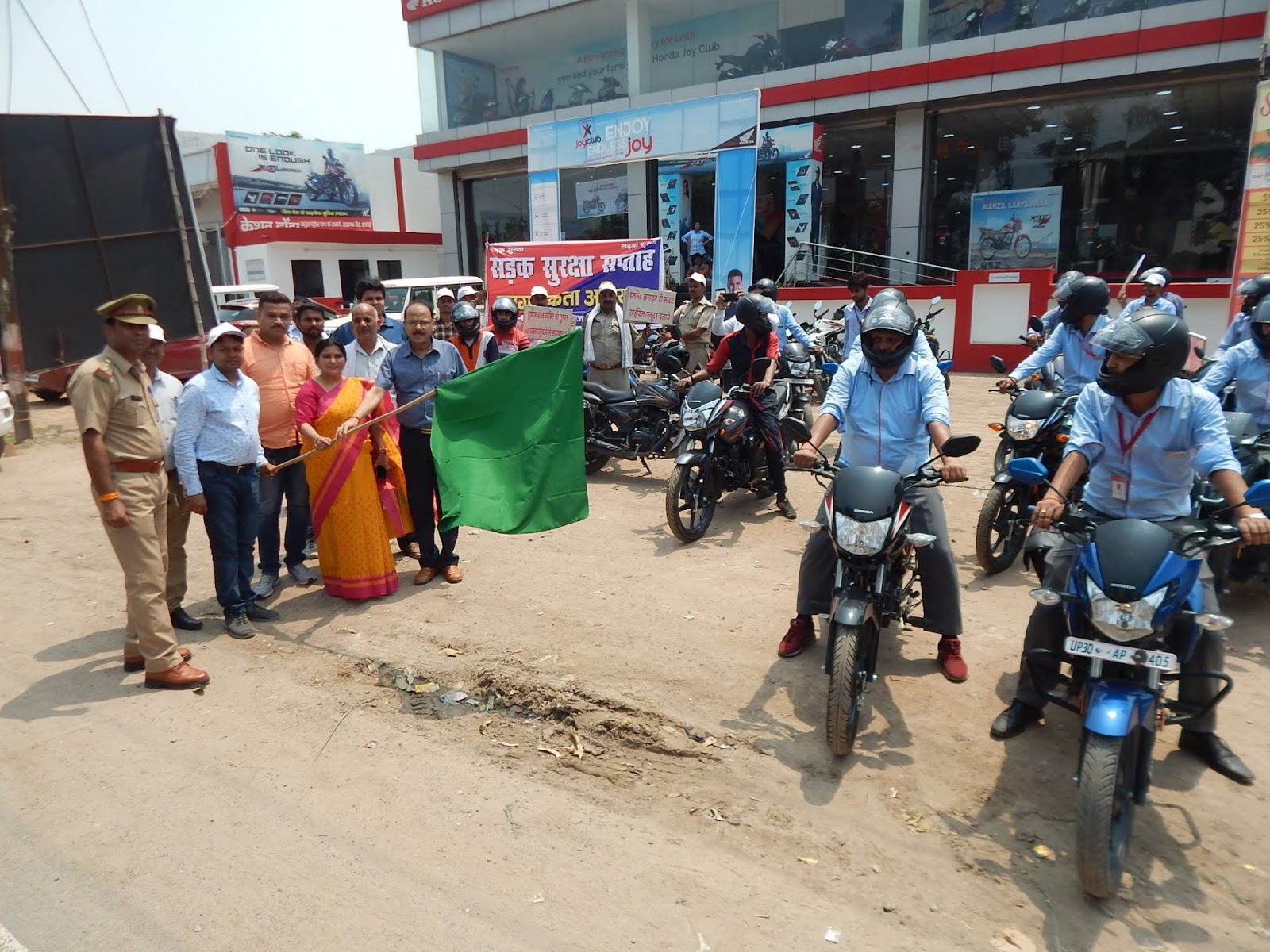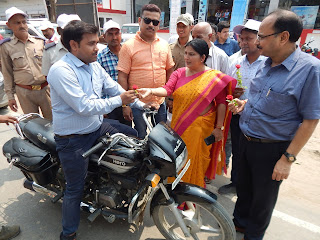 हरदोई, जून 2019ः- 17 से 22 जून 2019 तक चलने वाले सड़क सुरक्षा सप्ताह के अन्तिम दिन लखनऊ रोड स्थित केशव होण्डा शोरूम से आयोजित बाइक रैली को मा0 विधायक शाहाबाद रजनी तिवारी, अपर जिलाधिकारी संजय कुमार, एआरटीओ दीपक कुमार शाह ने हरी झण्डी दिखाकर रवाना किया तथा बिना हेलमेट बाइक सवार एवं बिना सीट बेल्ट लगायें चैपहिया वाहन चालकों को गुलाब का फूल भेंट कर हेलमेट एवं सीट बेल्ट लगाने के लिए पे्ररित किया।