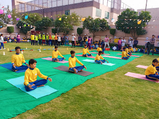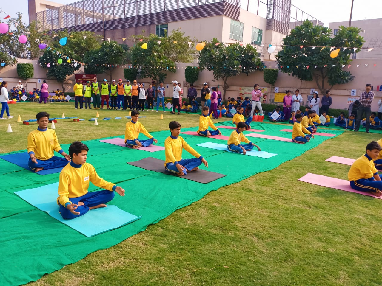 कार्यक्रम का शुभारंभ छात्रों ने योग के बेहतरीन प्रदर्शन से किया, जिसमें सूर्य नमस्कार और विभिन्न आसन भी शामिल रहे।
