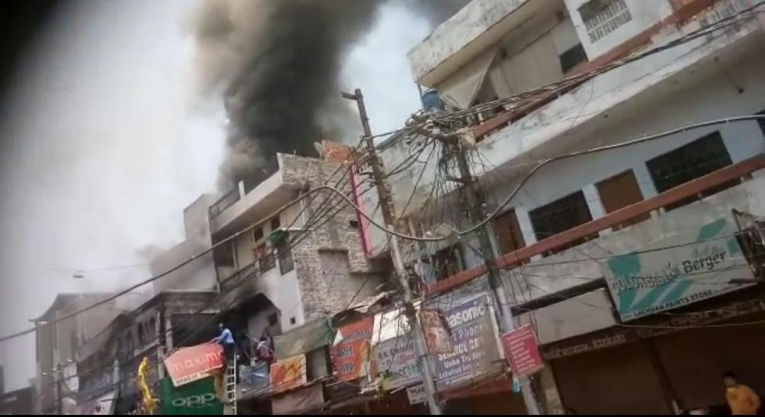 । दुकान का सारा माल जलकर खाक । फायर ब्रिगेड की गाड़ियां आग बुझाने में जुटी आग पर काबू पाने में सफलता।