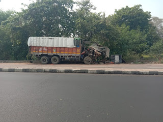 सीतापुर महुली निवासी ट्रक चालक सुरेश मिश्रा जो अपने बेटे कल्लू के साथ बुधवार रात रायबरेली कुन्दनगंज स्तिथ सीमेंट फैक्ट्री से ट्रक में सीमेंट लेकर सीतापुर जा रहा था, रात करीब दो बजे इनकी ट्रक जैसे ही निगोहां मस्तीपुर गांव के पास पहुंची की आगे चल रहे एक दूसरे ट्रक का टायर अचानक फट गया और वह अनियंत्रित होकर इनकी ट्रक में जा भिड़ा, जिसमें ट्रक चालक सुरेश और बेटा कल्लू गंभीर रूप से घायल हो गए,स्थानीय लोगों ने निगोहां पुलिस को सूचना दी, मौके पर घायल तड़पते रहे पिता पुत्र को पहुंची पुलिस ने उपचार के लिए सीएचसी मोहनलालगंज भेजा जहां पर डाक्टरों ने ट्रक चालक सुरेश मिश्रा को मृत घोषित कर दिया। व बैठे कल्लू का इलाज कर छुट्टी दे दी ।